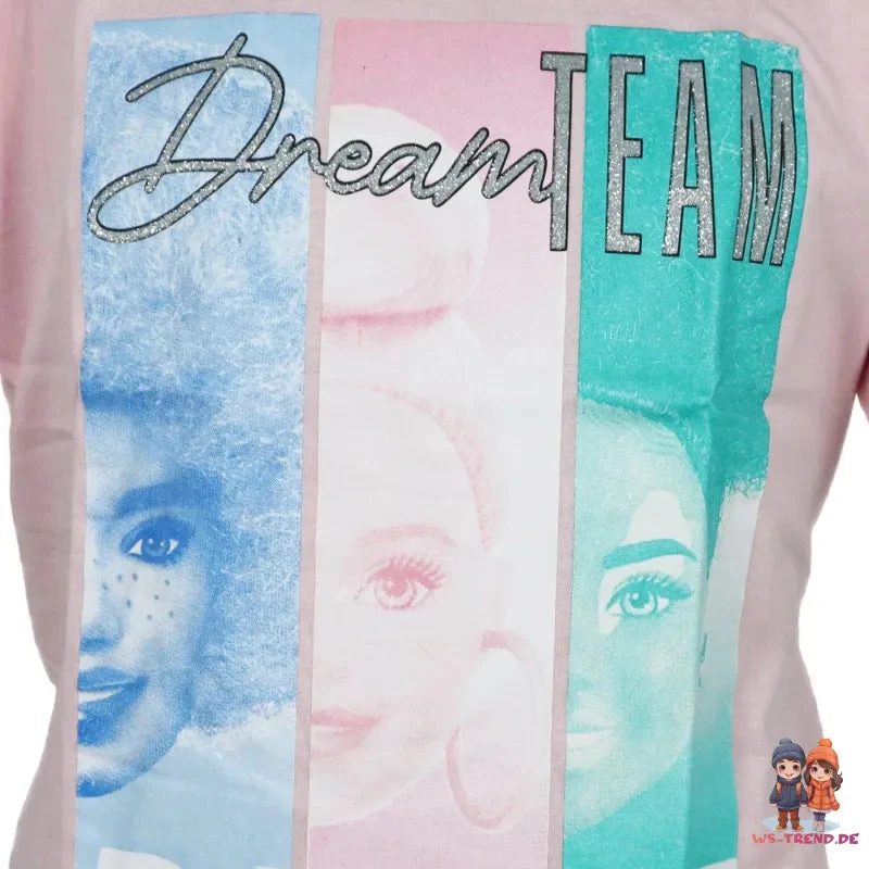 Ein lässiger Schnitt, 100% Baumwolle und das fröhliche Design machen dieses Barbie and Friends T-Shirt zum perfekten Begleiter für modebewusste Kinder.