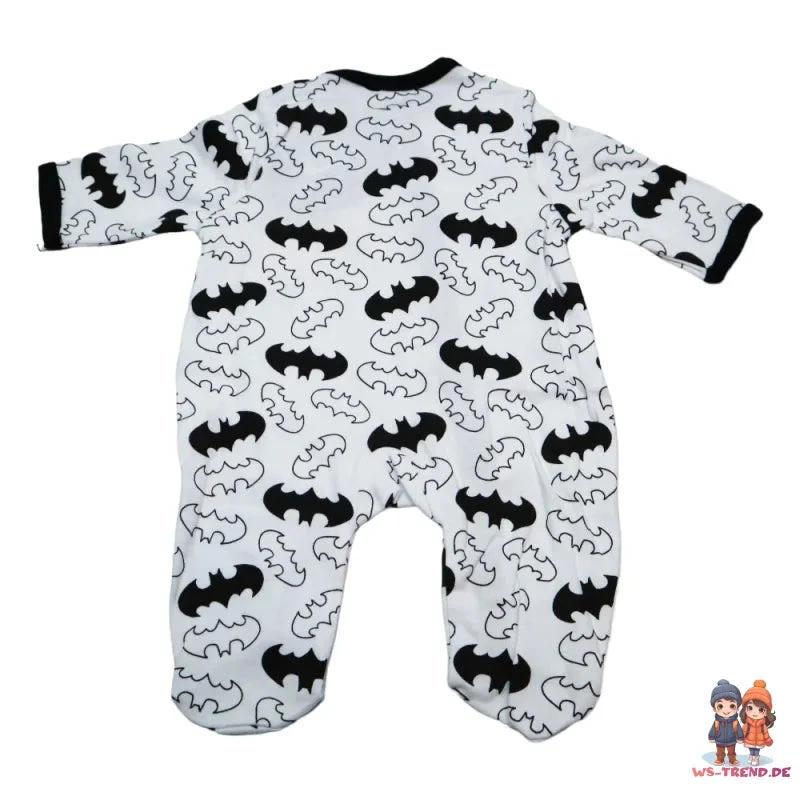 ✅ Batman-Design: Stilvoller Strampler mit ikonischem Batman-Logo und Bat-Symbol-Muster, ideal für kleine Superhelden in Ausbildung.