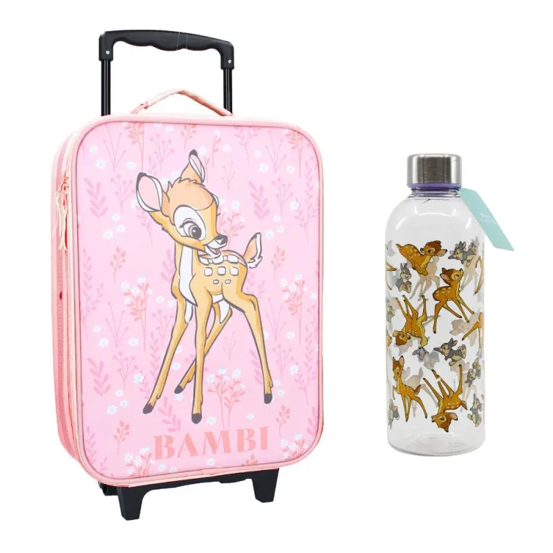 Für die kleinen Fans des zeitlosen Disney-Klassikers „Bambi“ ist dieses bezaubernde Set aus Trolley-Kinderkoffer und Trinkflasche eine wunderbare Reiseausrüstung. Mit einem niedlichen Bambi-Design auf einem zartrosa Hintergrund ist der Koffer perfekt für Übernachtungen, Ausflüge oder Urlaubsreisen.
