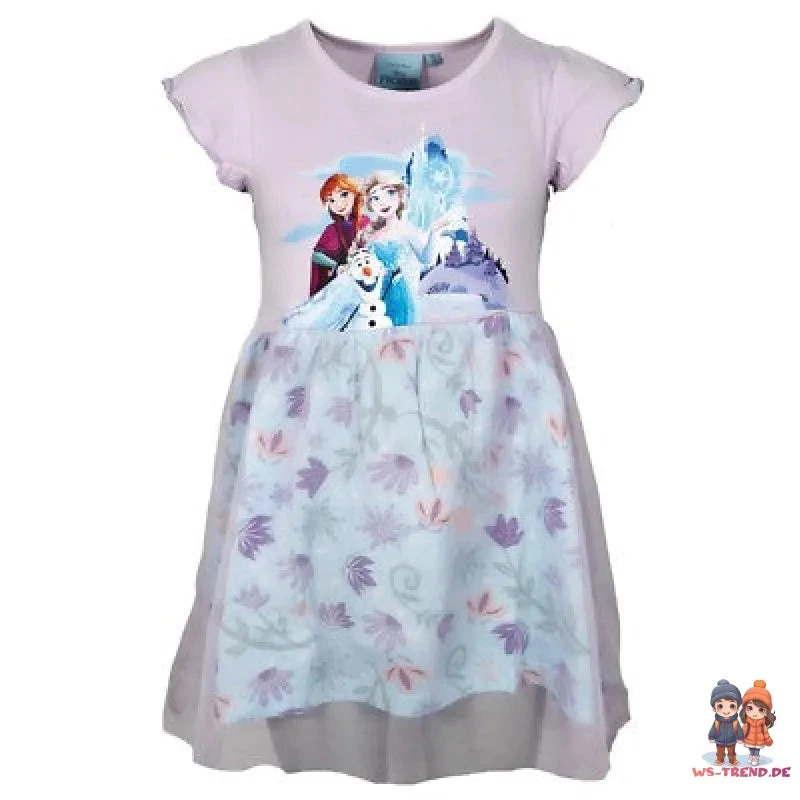 Dieses Frozen Sommerkleid begeistert durch liebevolle Details, sanfte Farben und ein märchenhaftes Design mit Anna, Elsa und Olaf.