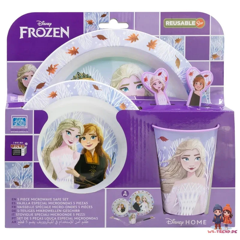 Dieses zauberhafte Disney Die Eiskönigin Geschirr-Set (5-teilig) bringt magische Mahlzeiten mit Elsa, Anna und Olaf – ideal für kleine Frozen-Fans!