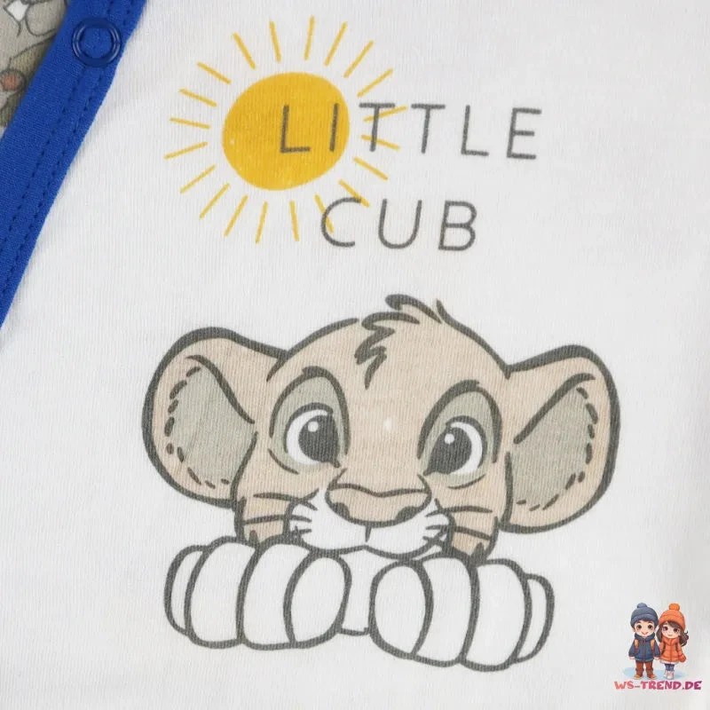 Lassen Sie Ihr Baby in diesem entzückenden langärmeligen Baby Strampler Abenteuer in der Savanne erleben! Inspiriert durch Disney’s zeitlosen Klassiker „Der König der Löwen“, zeigt dieser Strampler ein bezauberndes Motiv von Simba, der jeden in seiner Umgebung zum Lächeln bringen wird.