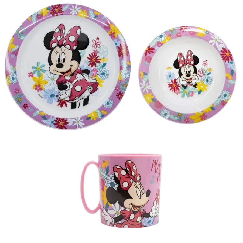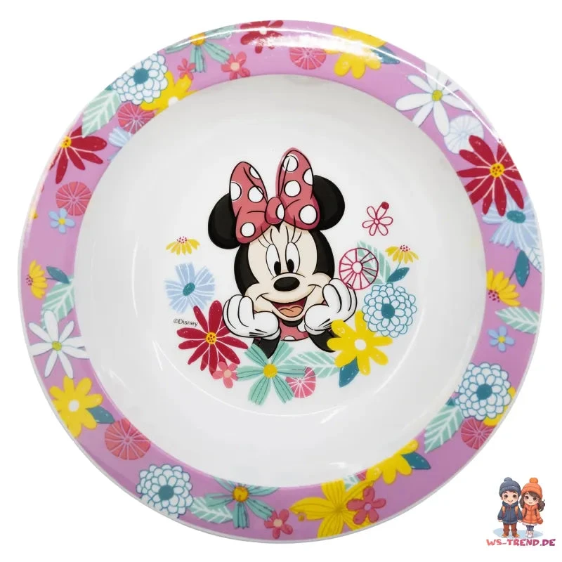 Mit dem zauberhaften Disney Minnie Mouse Geschirr-Set wird jedes Essen zu einem fröhlichen Ereignis. Das Set besteht aus einem flachen Teller, einer tiefen Schüssel und einem hübschen Becher – alles mit einem bezaubernden Design von Minnie Mouse vor einem blumigen Hintergrund.