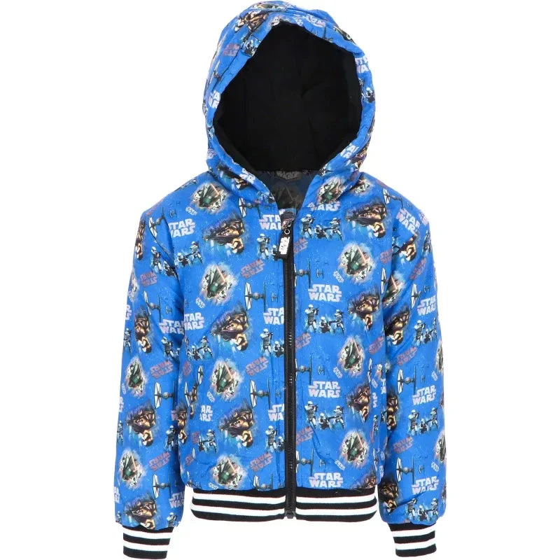 Wappnen Sie sich gegen die Kälte mit der Macht der Storm Trooper! Diese Jacke, inspiriert von Disneys Star Wars, kombiniert cooles Design mit funktionalem Komfort und ist der ideale Begleiter für Star Wars Fans in der kalten Jahreszeit.