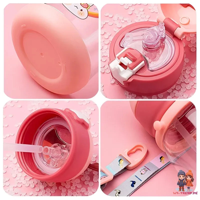 ✅ Praktischer Trinkhalm: Die Flasche hat einen integrierten Trinkhalm, der leicht zu öffnen und zu schließen ist – ideal für kinderfreundliches Trinken ohne Verschütten.