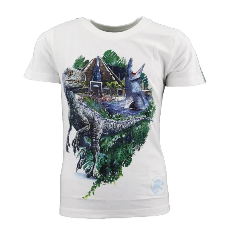 Dieses kurzarm T-Shirt für Jungen mit dem Motiv aus Jurassic World und Jurassic Park ist die perfekte Wahl für alle kleinen Dino-Fans. Hergestellt aus 100% Baumwolle, bietet es hohen Tragekomfort und einen stylischen Look. Wählen Sie zwischen Dunkelblau mit dem Velociraptor Motiv oder Weiß mit dem Jurassic Park Logo. Dieses T-Shirt ist ein absolutes Must-have für alle Jungen, die von der faszinierenden Welt der Dinosaurier begeistert sind.