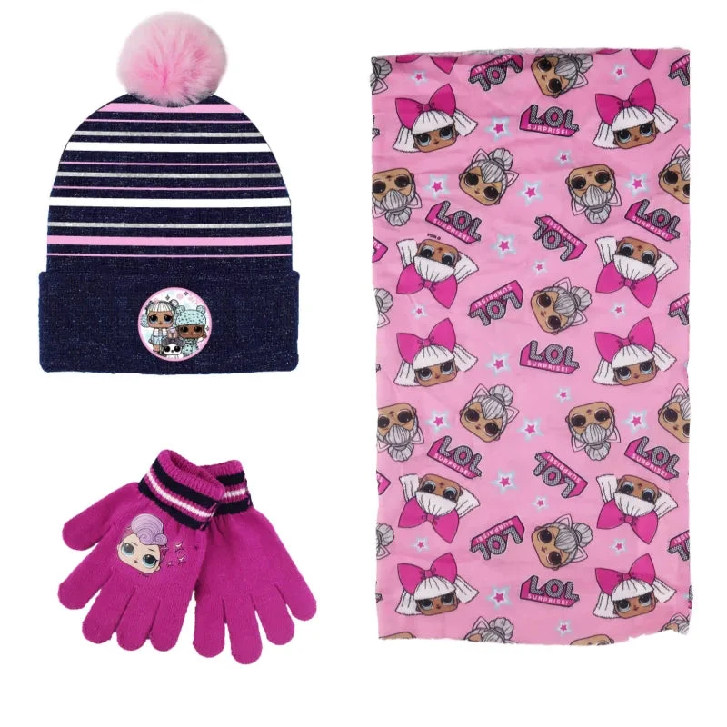 Dieses süße Winterset ist das perfekte Geschenk für alle LOL Surprise Fans. Es besteht aus einer Wintermütze, einem Snood und Handschuhen und eignet sich für Kinder oder junge Erwachsene. Das Set hält Sie an kalten Wintertagen warm und ist auch ein großartiges Fashion-Statement.