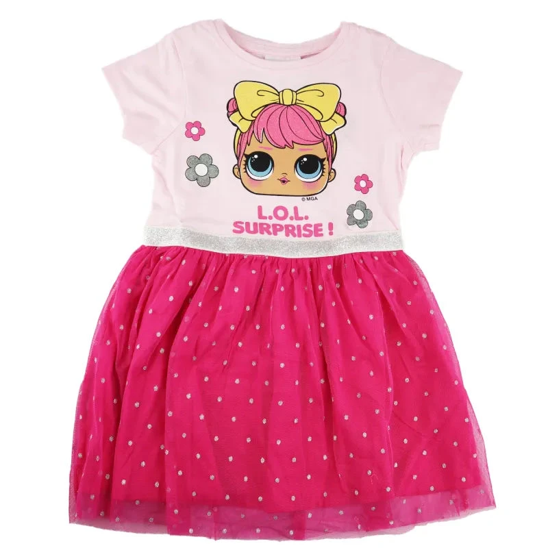 Das elegante und glamouröse Tüllkleid mit dem Motiv der Girls aus LOL Surprise ist das perfekte Kleid für Mädchen, die gerne im Mittelpunkt stehen und sich schick kleiden möchten. Der weiche Tüllstoff und das ansprechende Design mit den beliebten LOL Surprise Girls machen dieses Kleid zu einem echten Hingucker.