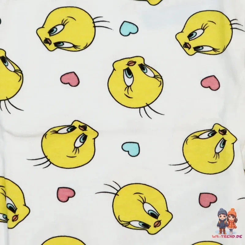 ✅ Fröhliches Tweety-Motiv: Der Body ist mit vielen süßen Tweety-Köpfen bedruckt und durch kleine Herzchen ergänzt, was ihm einen verspielten Look verleiht.