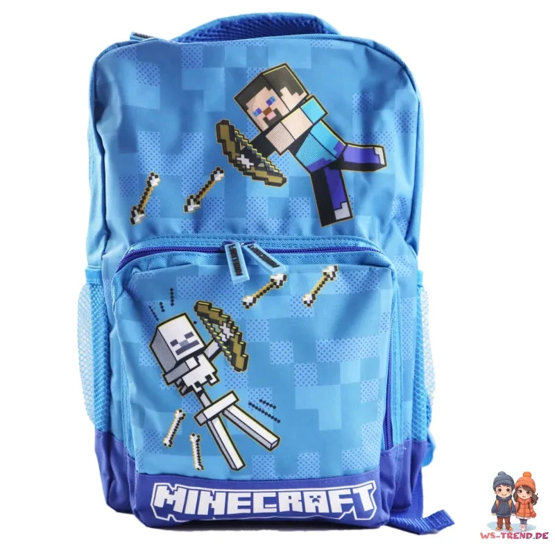 Unser blauer Minecraft Kinder Rucksack ist genau das Richtige für kleine Minecraft-Fans! Er ist mit einem coolen Motiv von Steve und dem Skelettschützen verziert, was Ihr Kind begeistern wird.