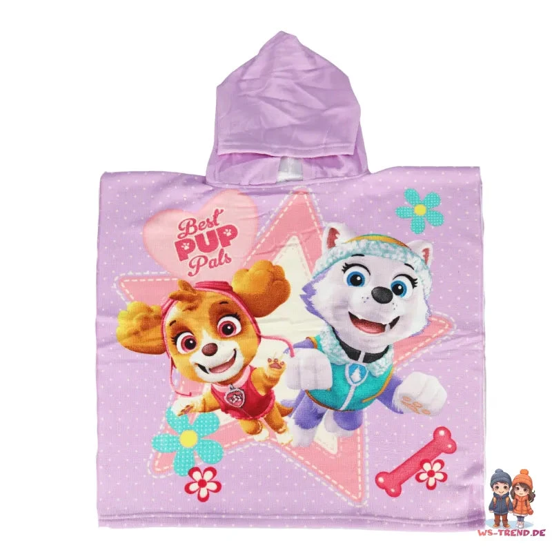 Dieser entzückende Paw Patrol Badeponcho ist perfekt für kleine Fans der mutigen Welpen Skye und Everest. Das Design auf sanftem Lila-Hintergrund mit lebendigen Charakterbildern und fröhlichen Dekorationen macht diesen Poncho nicht nur praktisch, sondern auch zu einem echten Hingucker.