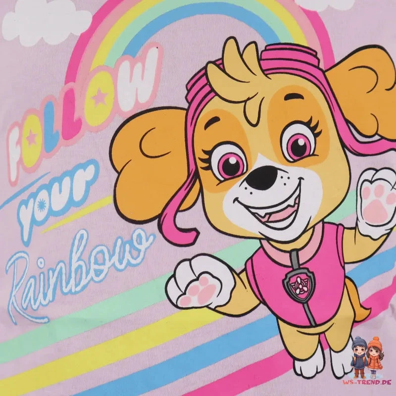 Das T-Shirt ist in Dunkelblau oder Rosa erhältlich, passt sich durch sein elastisches Material perfekt der Figur an und bietet eine entspannte Passform. Es ist die ideale Wahl für alle, die ein bequemes und lässiges T-Shirt suchen, das den Charme der beliebten Paw Patrol-Serie verströmt.