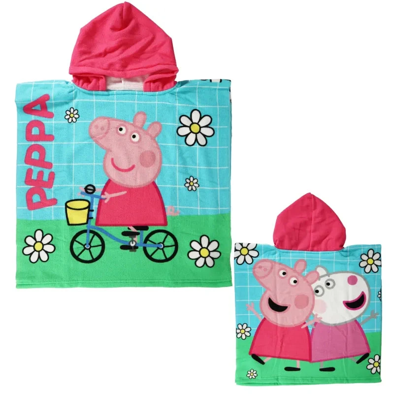 Dieser farbenfrohe Mikrofaser-Poncho bringt mit seinen beidseitigen Motiven von Peppa Pig und ihrer Freundin Luzie Locke doppelt Freude. Er ist ideal für die Nutzung nach dem Bad, beim Schwimmen oder einfach für gemütliche Stunden zu Hause.