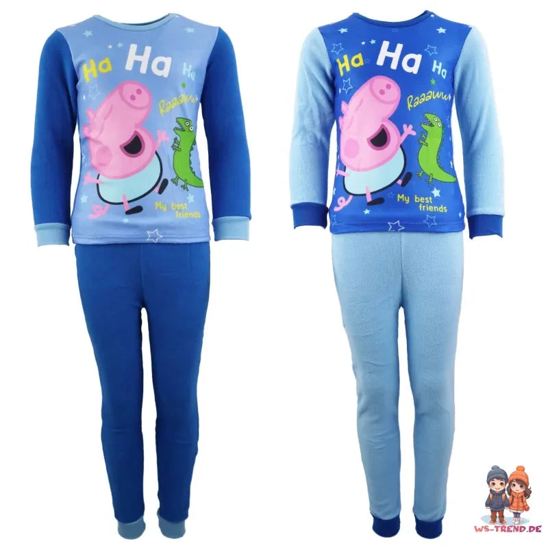 Schlummern im Stil von Peppa Pig! Dieser Fleece Schlafanzug ist nicht nur perfekt für süße Träume, sondern auch ideal, um sich nach einem langen Tag gemütlich zu entspannen. Mit einem coolen Design von George und seinem Saurier spricht er alle kleinen Fans von Peppa Pig an und lässt sie Teil ihrer Lieblingsserie werden.