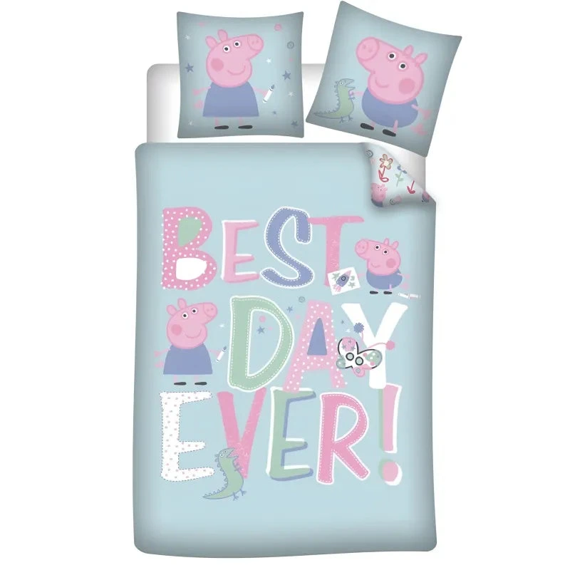 ✅ Fröhliches Design: Peppa Wutz-Motiv mit buntem „Best Day Ever“-Schriftzug – perfekt für Kinderzimmer.