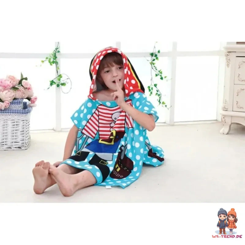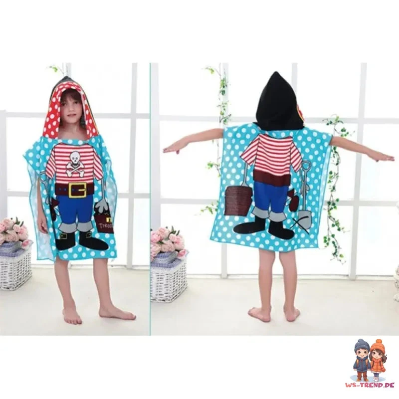 Ahoi, kleine Matrosen! Mit unserem Piraten Kinderponcho wird jede Badezeit zu einer Schatzsuche. Ideal für kleine Piratenfans, bietet dieser Poncho kuschelige Wärme und Trockenheit nach dem Planschen im Wasser. Mit einem mutigen Piratenmotiv ausgestattet, ist dieser Poncho eine Einladung zu fantasievollen Abenteuern auf hoher See.