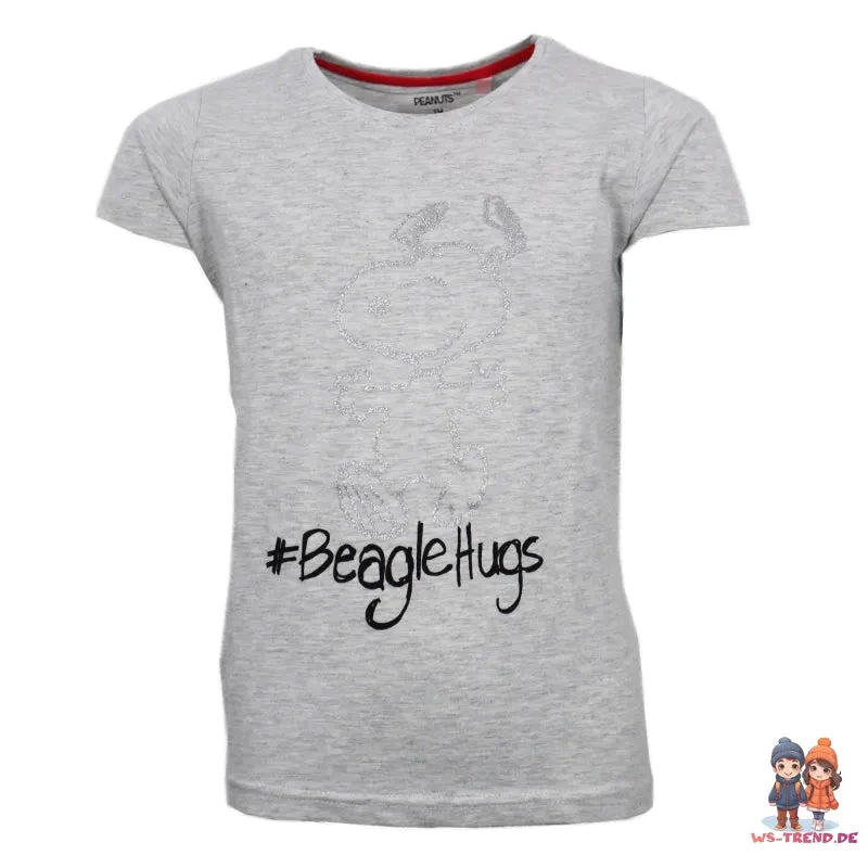 ✅ Charmantes Snoopy-Design: Das Shirt zeigt Snoopy in einer verspielten Pose mit dem Hashtag #BeagleHugs, perfekt für kleine Kuschelfreunde.