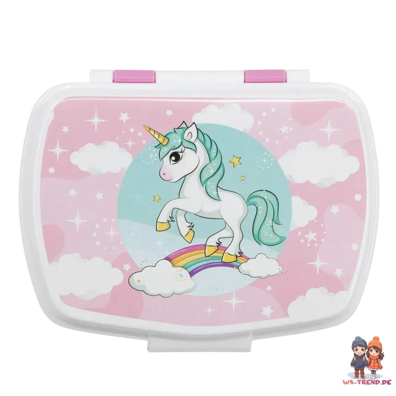 Machen Sie Snack- und Mahlzeiten magisch mit unserem Einhorn 2-teiligen Kinder Set! Ein entzückendes Design trifft auf Funktionalität, um das Essen unterwegs einfach und spaßig zu machen.