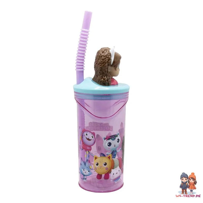 Dieser Gabbys Dollhouse Trinkbecher (360 ml) mit 3D-Gabby-Deckel und integriertem Halm macht jede Trinkpause spielerisch magisch – perfekt für kleine Fans!