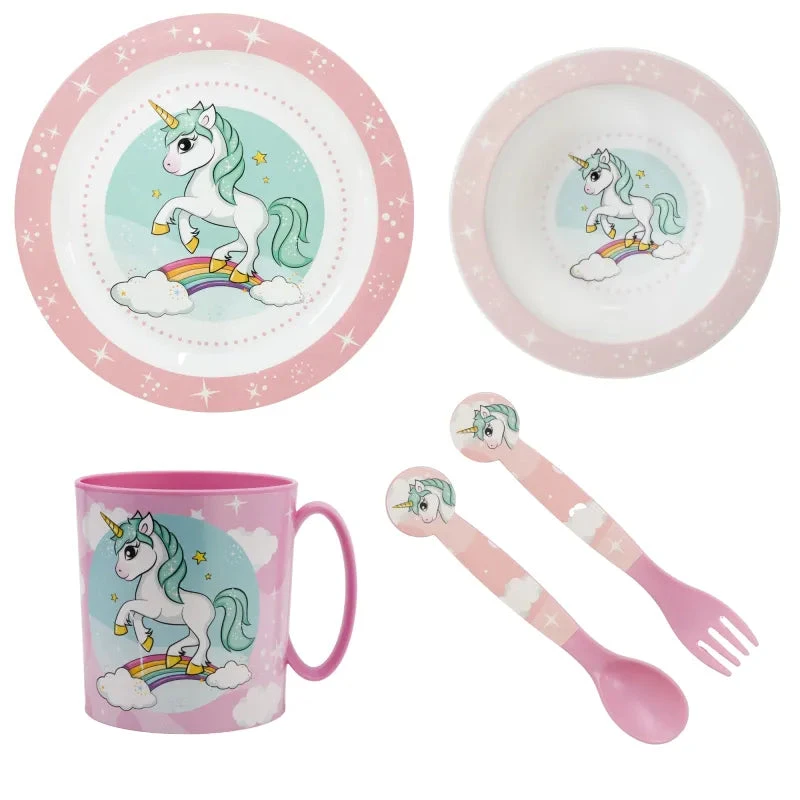 Tauche in eine Welt voller Magie und Fantasie ein, jedes Mal wenn es Zeit zum Essen ist! Unser 5-teiliges Einhorn-Geschirr-Set ist wie ein Traum, der wahr wird und wurde speziell für die kleinen Einhorn-Fans entworfen.